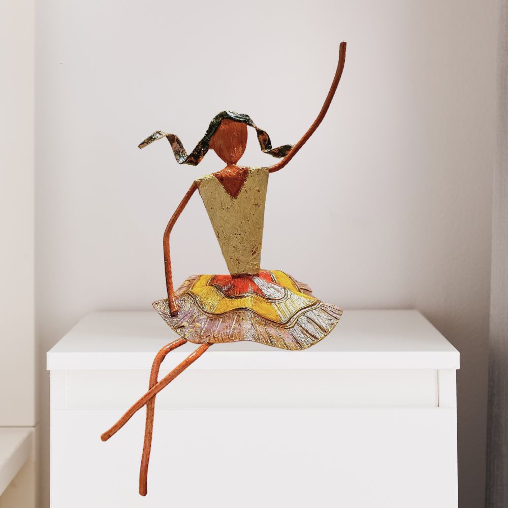 O trabalho de Patrícia Barros se destaca pela habilidade em transformar o metal, especialmente a chapa de ferro, em peças cheias de vida e movimento. Além do metal, ela incorpora outros materiais como cerâmica, madeira e fibras naturais, criando um contraste interessante e enriquecendo suas criações.