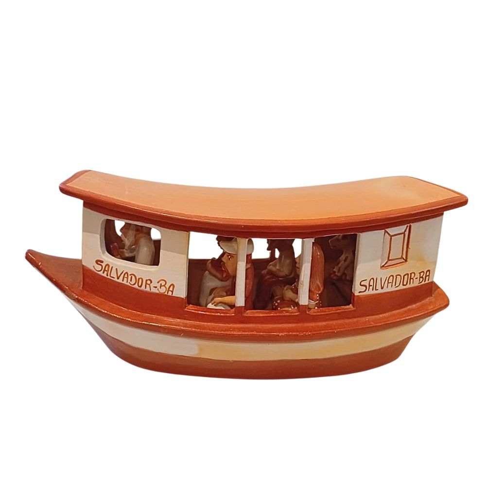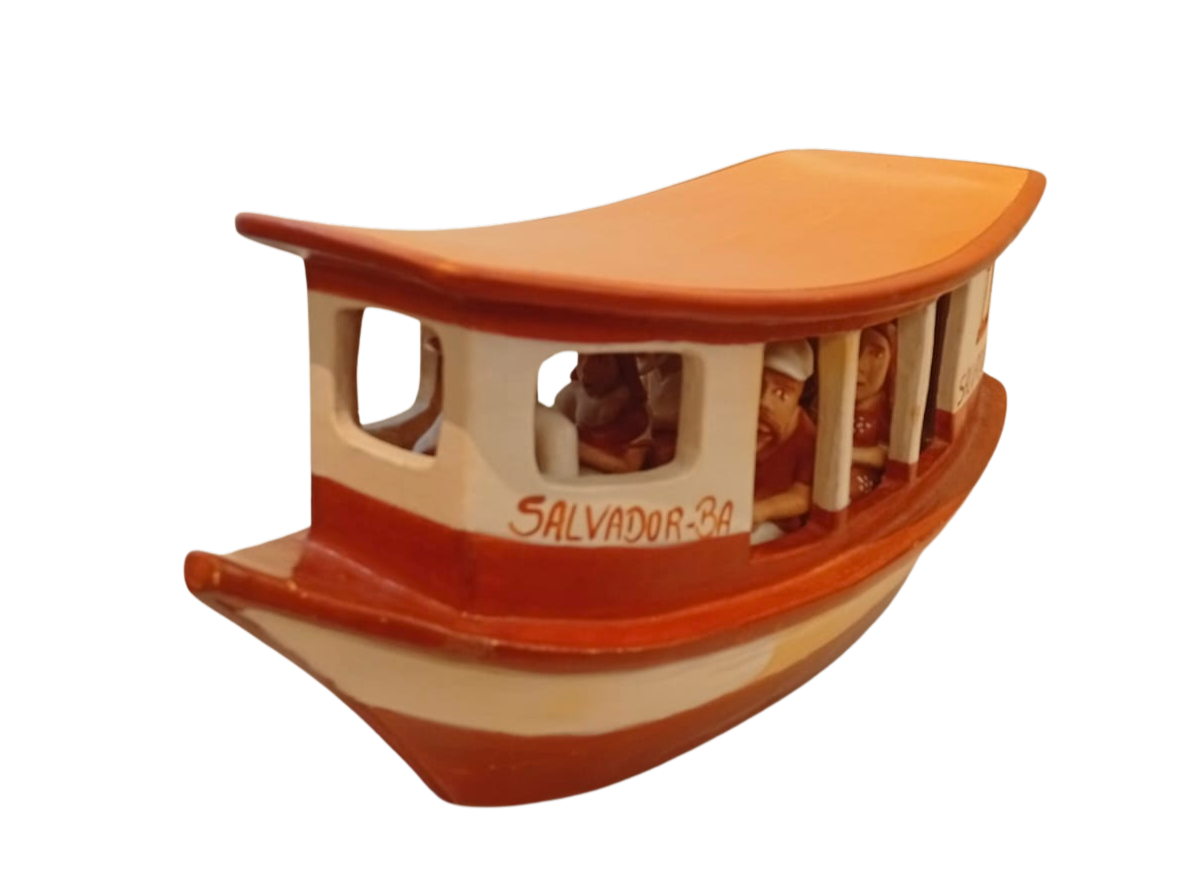 A escultura barca de cerâmica é uma representação do cotidiano de quem faz a travessia Salvador x Mar Grande e outras regiões da Bahia, produzida pelas mãos da artesã Leonor, evidenciamos a rotina de um povo com suas histórias e particularidades que servem de inspiração para criar a imagem de mais um dia sem passar despercebido sua beleza.