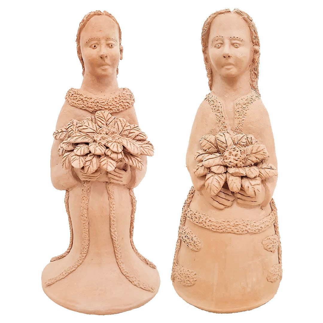 Maria Dondoca em cerâmica natural feita pelaa mãos da artista Maria de Zezinho.