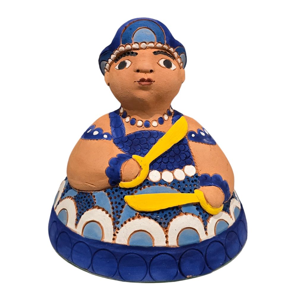 Orixá Ogum em cerâmica pintada e criada pelas mãos do artesão Jan Araújo.