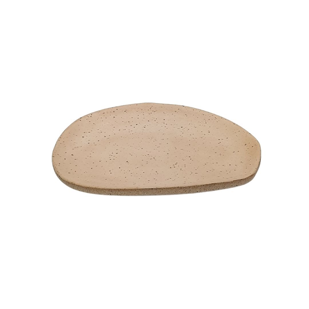 Prato de sobremesa rosa em cerâmica feito pelas mãos da artesã Micaella Alcantara.