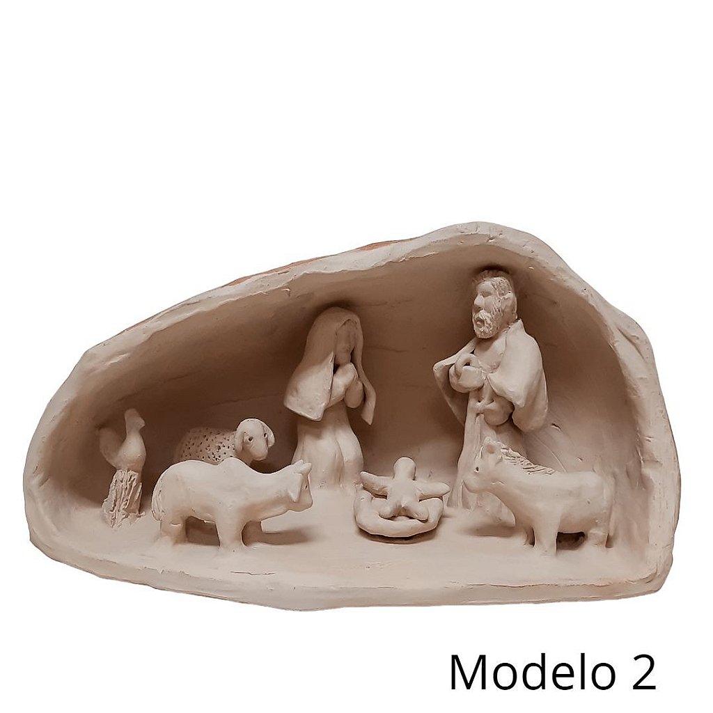 Presépio feito manualmente com barro tabatinga que dá a coloração branca.